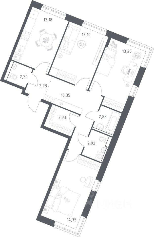 Продаётся 3-комнатная квартира в строящемся доме (Дом 9), срок сдачи: III-кв. 2026, общей площадью 77.99 кв.м., на 7 этаже. Жилой комплекс "Квартал Западный" в Новомосковском округе. Это жизнь в Москве без столичной суеты, в окружении лесопарка и реки.