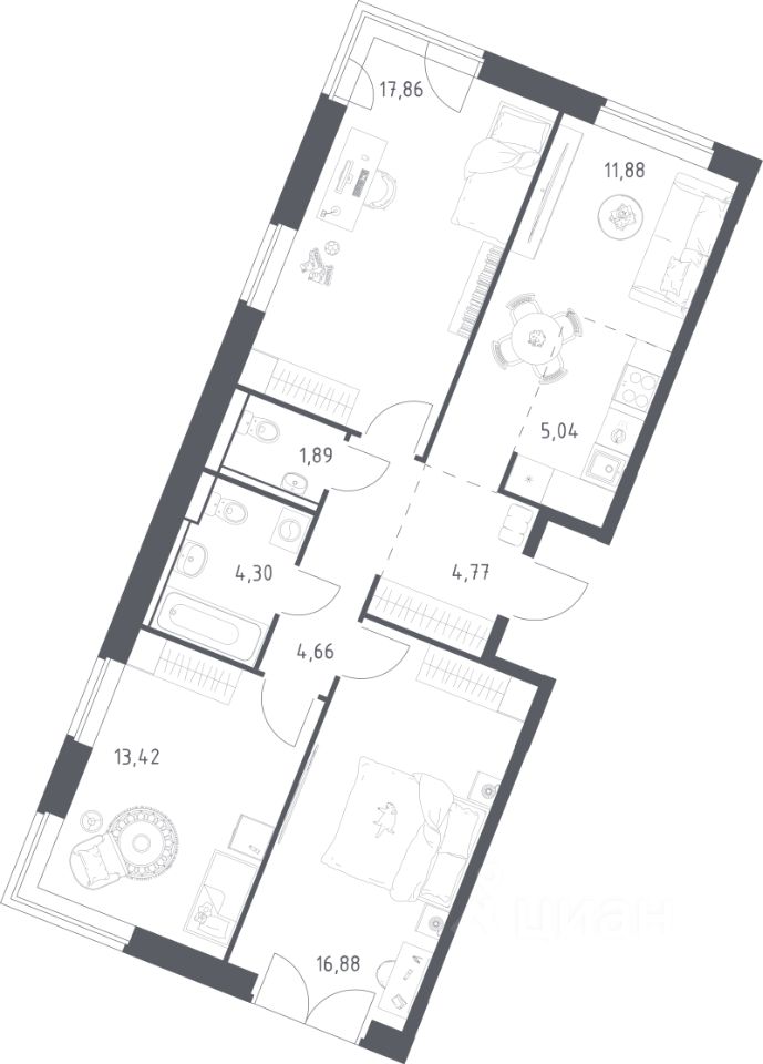 Продаётся 3-комнатная квартира в строящемся доме (Дом 9), срок сдачи: III-кв. 2026, общей площадью 80.7 кв.м., на 5 этаже. Жилой комплекс "Квартал Западный" в Новомосковском округе. Это жизнь в Москве без столичной суеты, в окружении лесопарка и реки.