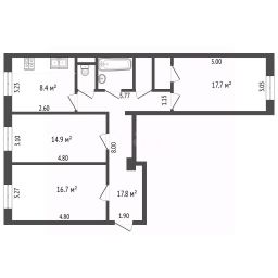 - Просторная квартира 83.4 м.кв. с изолированными комнатами, что делает проживание комфортным