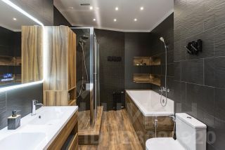 Планировка продумана для комфортной жизни семьи: большая кухня-гостиная и две изолированные спальни. В квартире два санузла: основной очень просторный, в нем установлена душевая кабина, и гостевой с туалетом и раковиной. Предусмотрено много мест для хранения — есть отдельная гардеробная комната и вместительная кладовая. Также в планировке два балкона.