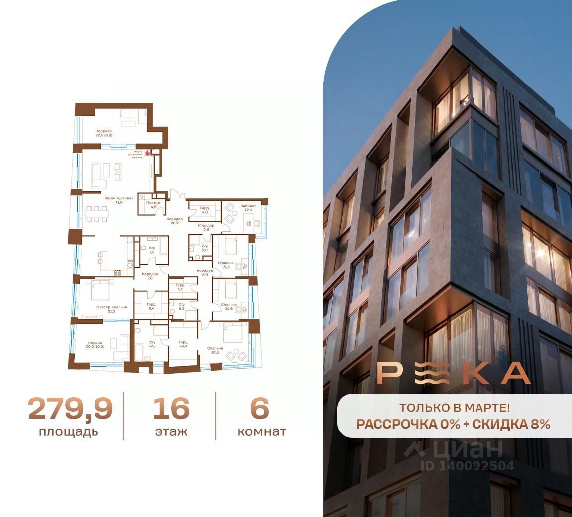 Продается многокомнатная квартира, 279,9 м²