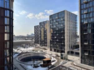 Виды из окон на облагороженный внутренний двор, Москва-сити и МГУ.