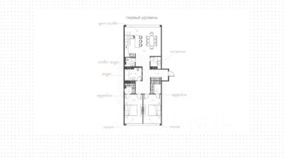 На первом уровне спланировали кухню-гостиную с деревянным гарнитуром, мастер-спальню с зеркальным потолком, а также большой ванной комнатой с окном, гардеробную и гостевой санузел. Второй уровень включает гостиную с возможностью установки проектора для домашнего кинотеатра и доступом на террасу, две детские спальни с выходами на вторую террасу с видом во внутренний двор, гардеробную и совмещенный санузел. Предусмотрены парковочные места для автомобилей на охраняемой территории комплекса.