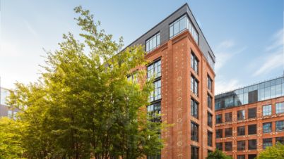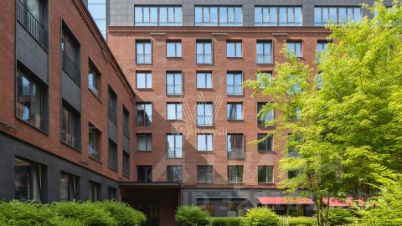 Главное о доме. "Большевик" — ансамбль лофтов в краснокирпичных корпусах бывшей кондитерской фабрики. Архитектура держит индустриальный ритм: арки, чугунные детали, большие окна и галереи во дворах. Во входных группах — кирпич, металл, мягкий свет, стойка ресепшн и зоны для коротких встреч. Между корпусами устроили камерные дворики без машин с дорожками и зеленью. На территории работает Музей русского импрессионизма, на первых этажах — кафе и повседневные сервисы.