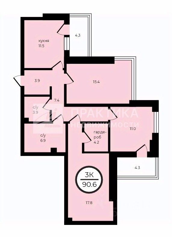 Общая площадь квартиры — 90,6 кв. м (с учетом лоджий), этаж 18 из 28