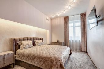 Функциональное зонирование квартиры обеспечивает комфортное проживание: гостиная объединена с зоной кухни с выходом на балкон. Мастер-спальня с санузлом с джакузи.