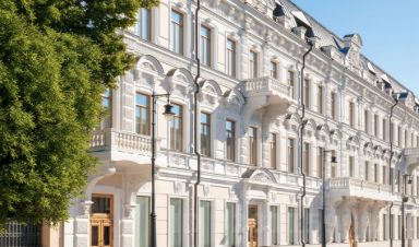 Сохраняя детали существующего исторического фасада, в 4-этажном здании застройщик оставит фигуры атлантов, которые поддерживают балкон над центральным входом, львиные маски под карнизом и жезлы Меркурия, расположенные на замковых камнях у окон на первом этаже. Балконы в доме будут оформлены чугунными литыми ограждениями. В квартирах установят деревянные оконные рамы на алюминиевом каркасе с газонаполнением и повышенной шумо- и теплоизоляцией. Дизайн-проект общественного пространства разработан архитектурным бюро "Цимайло, Ляшенко и партнеры".