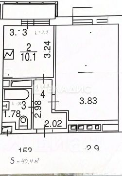 Общая площадь: 40,4 м²;