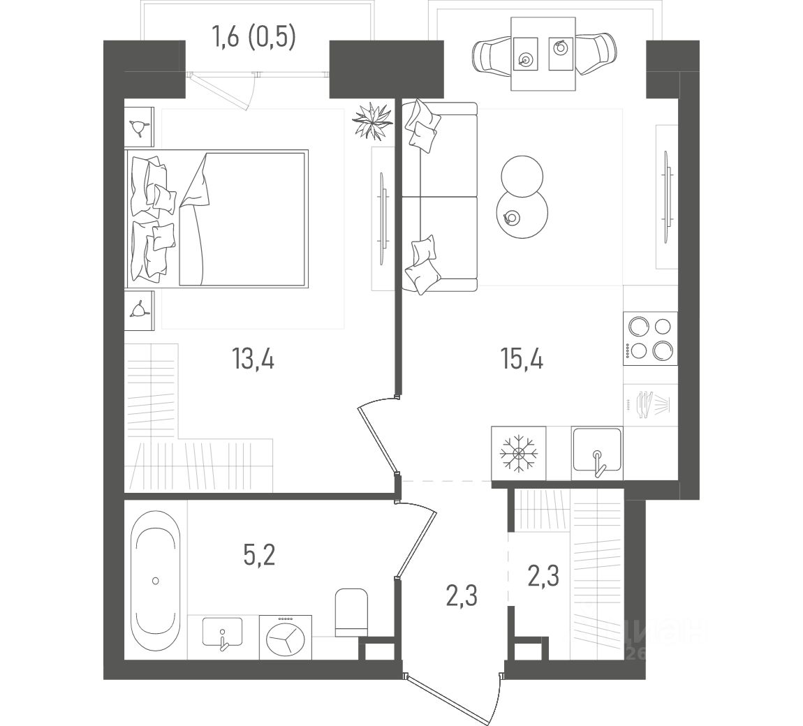 Прямая продажа от застройщика! Продается 1-комнатная квартира, квартира номер 94 общей площадью 39.1 кв.м. на 11 этаже 27 этажного дома, 1. Без отделки.