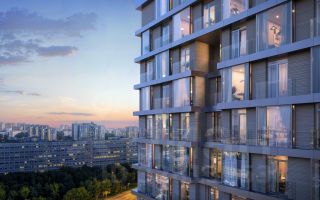 В каждой квартире — джамбо-окна в пол и балконы, стирающие грань между интерьером и городским пейзажем.