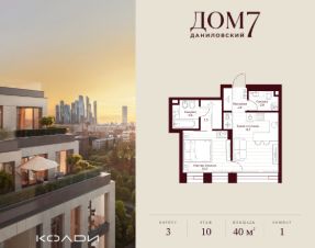 Продается 1-к квартира общей площадью 39.80 кв.м на 10 этаже в жилом квартале премиум-класса "Дом 7 Даниловский".