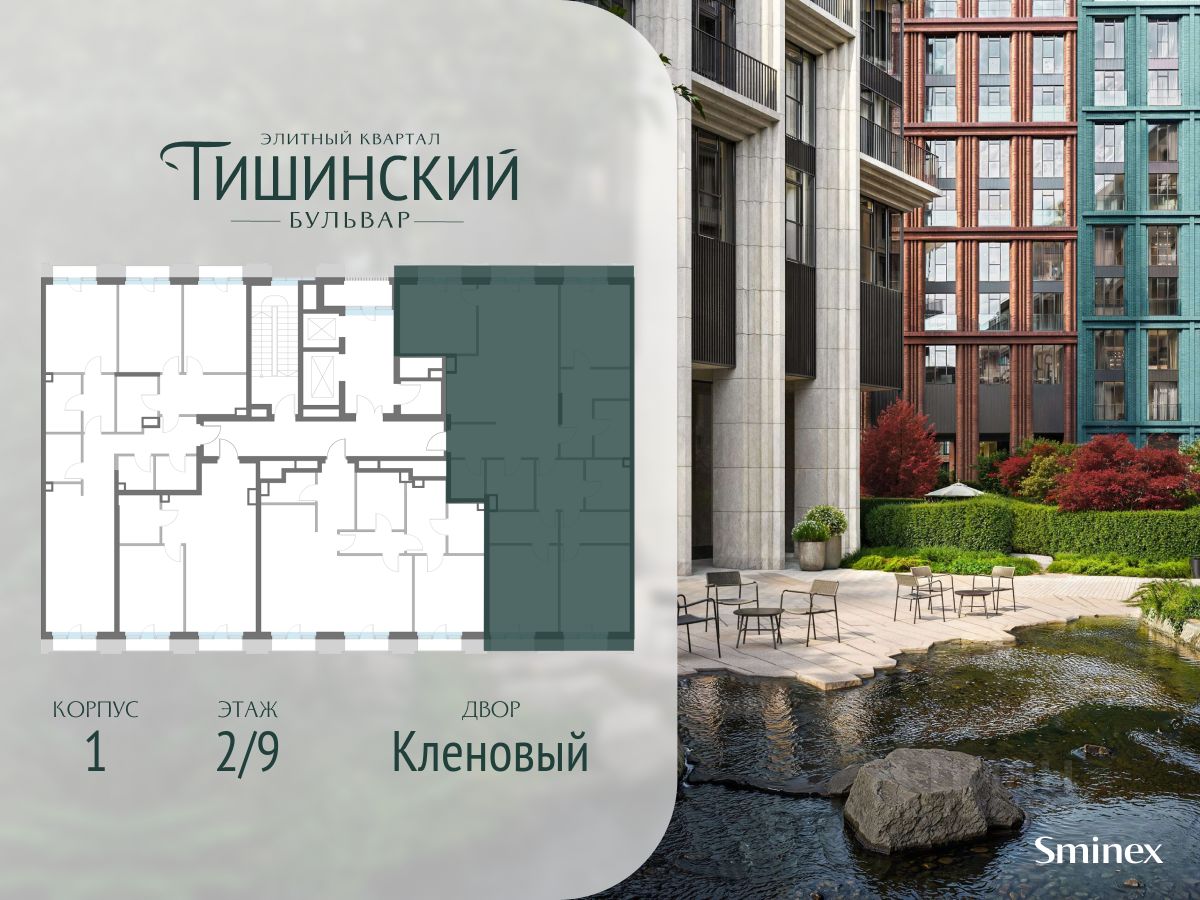 "Тишинский бульвар" - тихий зелёный элитный квартал на Тишинке, в престижном и комфортном районе центра Москвы. В нём создан уникальный для элитного дома прогулочный бульвар в своём огромном парке 1,9 га. В парке оборудованы зоны для активного и тихого отдыха, крытые галереи, приватные зелёные комнаты, многофункциональная спортивная площадка, воркаут-зона, детская площадка, сухой фонтан, ручей.