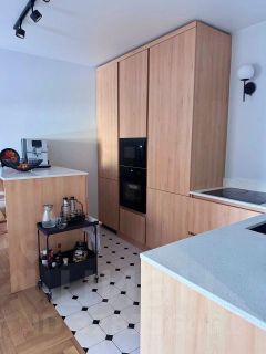 - евроремонт (ремонт переделывался полностью от застройщика): выравнены и покрашены стены, потолок натяжной, пол - паркет (шпон дуба), в коридоре и на кухне плитка итальянская.