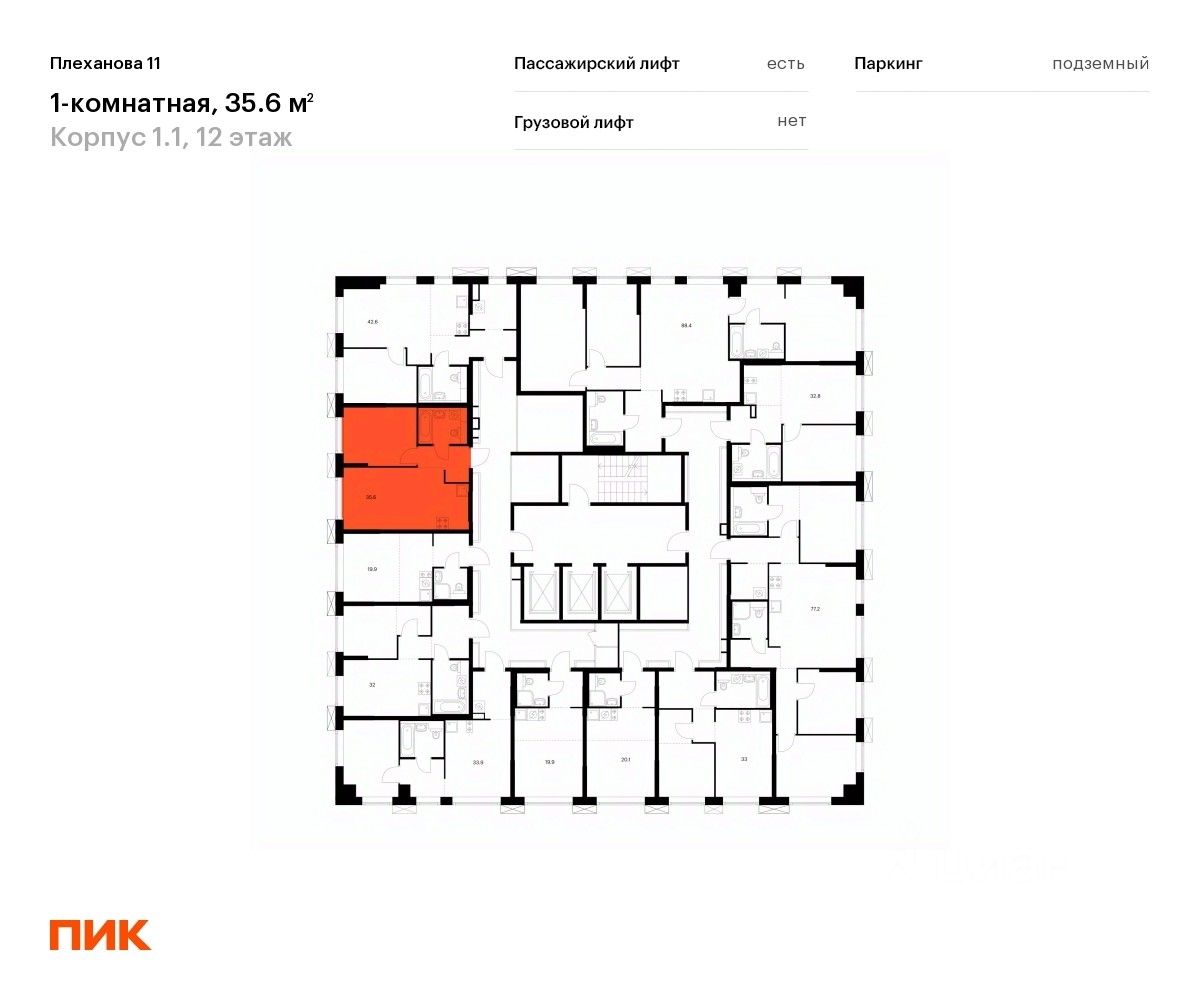 Продаётся 1-комн. квартира площадью 35,6 кв.м на 12 этаже 24 этажного дома (Корпус 1.1, Секция 1) проекта ПИК Плеханова 11. Светлый просторный подъезд на уровне земли, функциональная планировка, большие окна, c отделкой.