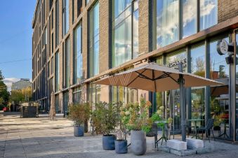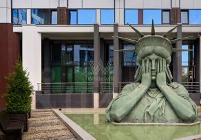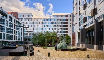 Главное о доме. "Трайбека Апартментс" — клубный квартал с атмосферой нью-йоркских лофтов и приватными дворами без машин. Красный кирпич, чёткие вертикали и крупные угловые окна добавляют графики и света. Во дворе стоит Статуя Свободы над водной чашей — узнаваемый символ места. В лобби — натуральные материалы, мягкий свет, зоны для коротких встреч и стойка ресепшн. На первых этажах работают кафе, гастробары, бьюти-сервисы и фитнес-студия EveryBody. Для автомобилей действует многоуровневый паркинг со спуском на лифте к корпусам.