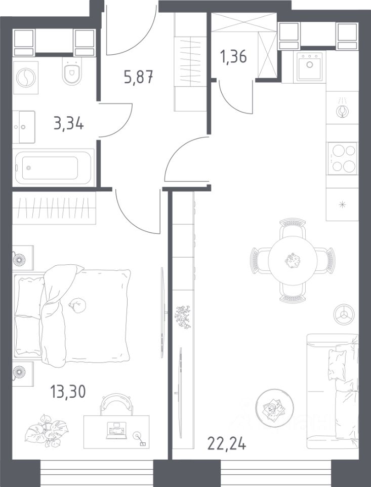 В "Пятницкое 58" представлен большой выбор планировок: лоты с отдельными гардеробными и кладовым комнатами, небольшие студии, а также 1 и 2-комнатные апартаменты.