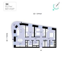 В продаже — трехкомнатная квартира с чистовой отделкой, общей площадью 117,77 кв. м. Квартира расположена на шестом этаже одинадцатиэтажной секции корпуса класса Адвансд в новом районе СберСити, который строит Сбер. Дом находится на второй береговой линии Москвы-реки.