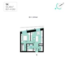 В продаже — однокомнатная квартира с чистовой отделкой, общей площадью 56,48 кв. м. Квартира расположена на восьмом этаже тринадцатиэтажной секции корпуса класса Адвансд в новом районе СберСити, который строит Сбер. Дом находится на второй береговой линии Москвы-реки.