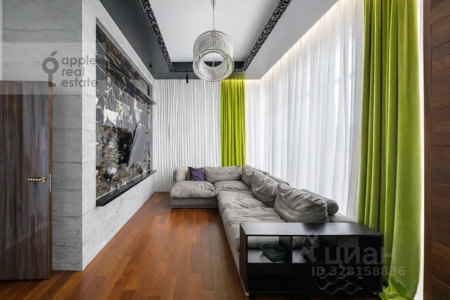 Интерьеры украшены рельефными панелями из натурального дерева, элементами декора из мрамора, эксклюзивными люстрами и светильниками из Италии. Продуманы разные световые сценарии освещения для создания уюта и ощущения приватности. Функциональная планировка: кухня-гостиная с высотой потолков 4,2 метра, мастер-спальня с собственной гардеробной, ванной и выходом на балкон, гостевой санузел, холл.