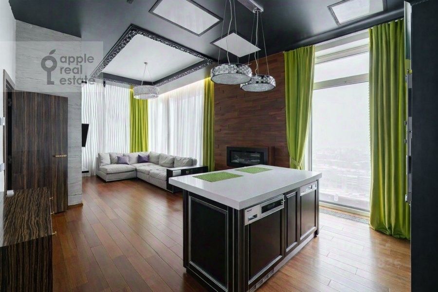 На полу выложен паркет из натурального дерева. Квартира укомплектована мебелью от бренда Albert Shtein, оборудована встроенной бытовой техникой от немецких производителей Gaggenau, Miele. Установлена сантехника Fantini из Италии с муранским стеклом.