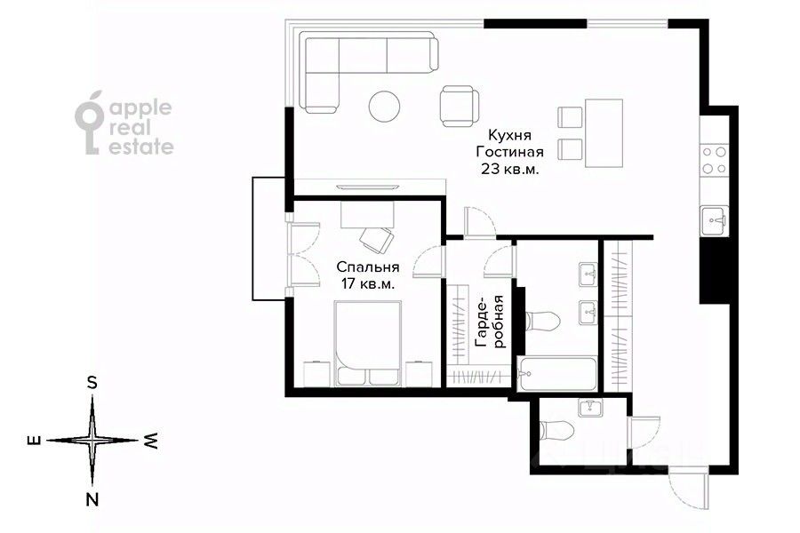 Квартира с одной мастер-спальней в комплексе бизнес-класса "Дубровская Слобода"!