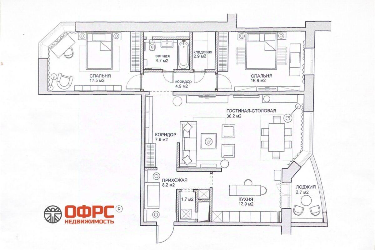 Номер объекта: 537123. Продается просторная 3-х комнатная квартира с двумя спальнями в одном из зеленых районов Москвы.