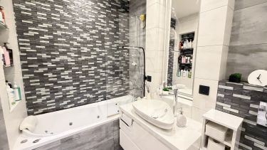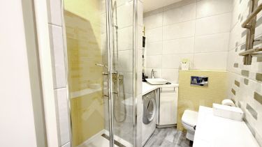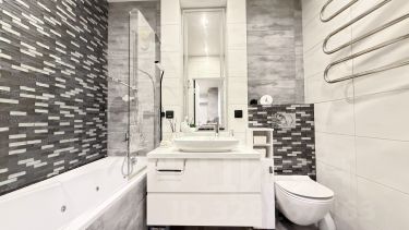 Два полноценных совмещенных санузла, в одном душевая кабина с тропическим душем, в другом - ванна с гидро и аэромассажем. Установлена система Аквастоп, а также проточный водонагреватель на санузел и кухню.