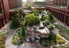 Двор разделен на 4 зоны разных эмоций и действий, которые пересечены и соединены веерными прогулочными маршрутами: