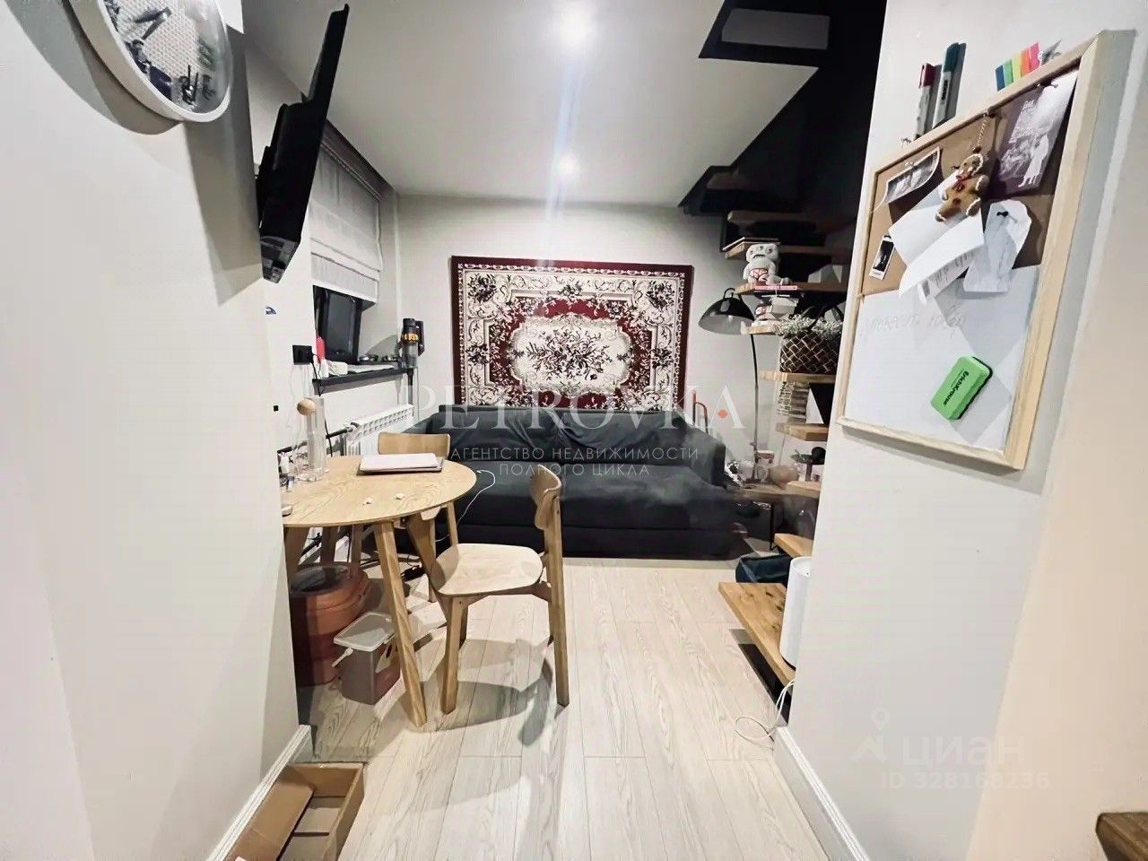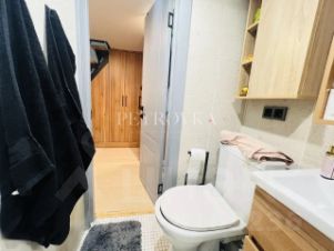 Апартамент с готовым ремонтом. Продуманное зонирование: компактная кухня, совмещенный санузел, спальная зона и гардеробная вынесены на второй уровень. Площадь использована максимально эффективно — бесполезных метров нет.