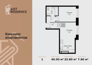 Продаются 2-к апартаменты площадью 40.50 кв.м. на 2-м этаже 30 этажного дома в "AIST RESIDENCE" от ГК МонАрх.