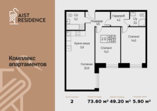 Продаются 3-к апартаменты площадью 73.60 кв.м. на 2-м этаже 30 этажного дома в "AIST RESIDENCE" от ГК МонАрх.