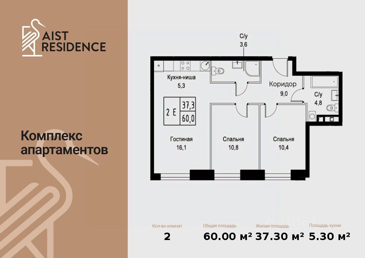 Продаются 3-к апартаменты площадью 60.00 кв.м. на 17-м этаже 30 этажного дома в "AIST RESIDENCE" от ГК МонАрх.