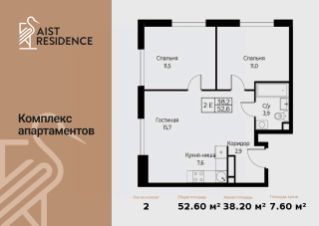 Продаются 3-к апартаменты площадью 52.60 кв.м. на 25-м этаже 30 этажного дома в "AIST RESIDENCE" от ГК МонАрх.