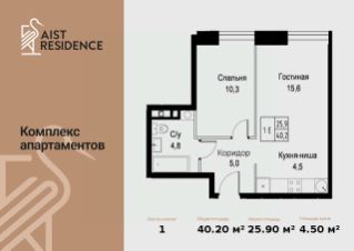 Продаются 2-к апартаменты площадью 40.20 кв.м. на 27-м этаже 30 этажного дома в "AIST RESIDENCE" от ГК МонАрх.