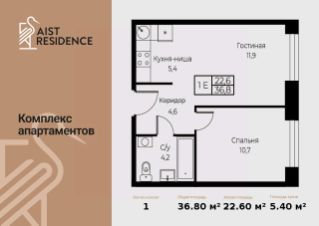 Продаются 2-к апартаменты площадью 36.80 кв.м. на 29-м этаже 30 этажного дома в "AIST RESIDENCE" от ГК МонАрх.