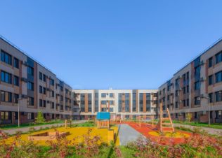 Элегантный минимализм в архитектуре разработан так, чтобы не нарушить, а дополнить гармонию окружающего ландшафта. Пластика фасада базируется на простой геометрии, а отличительной особенностью комплекса является невысокая этажность (4 этажа) большей части домов. Только два корпуса — 11 и 16 этажей.