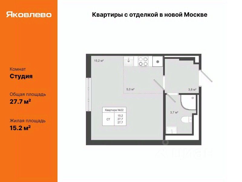 Продается студия площадью 27.7 кв.м. на 4-м этаже