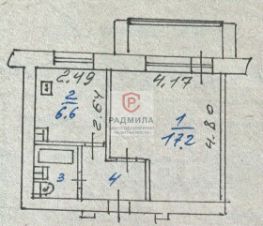 Общая Площадь квартиры - 33,2 кв.м из них жилая - 17,2 кв.м