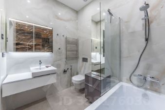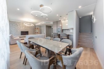 одна из них со своим санузлом с ванной и гардеробной. Всего три полноценных санузла. Просторная кухня с обеденным столом и барной стойкой, гостиная с балконом. Есть