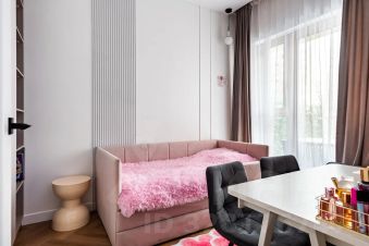 Функциональная планировка: входной коридор с системой хранения вещей, просторная кухня-гостиная с выделенной зоной отдыха, вместительная гардеробная, большой совмещенный санузел. В квартире две изолированные комнаты. Спальня с удобной кроватью с подъемным механизмом и ортопедическим матрасом, там же большой, вместительный шкаф для вещей. Вторая детская комната, полностью меблирована, но по желанию в ней можно устроить гостевую комнату или рабочий кабинет.
