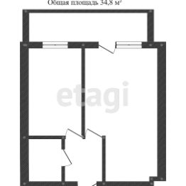 Общая площадь составляет 34,6 м², комната 19,6м², кухня 9 м².