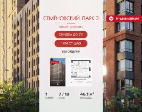 Продается 1-к квартира 46,1 кв.м. в ЖК "Семеновский парк 2" на 7-м этаже 18 этажного дома.
