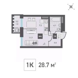 Продаётся 1-комнатная квартира в строящемся доме (Корпус 4), срок сдачи: IV-кв. 2026, общей площадью 28.7 кв.м., на 3 этаже. Жилой дом со встроенными нежилыми помещениями и подземной автостоянкой, расположенный по адресу: г. Москва, внутригородское муниципальное образование Матушкино, г. Зеленоград
