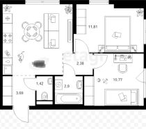 В квартире выполнен ремонт от застройщика, имеется все необходимое для проживания: установлен комплект кухонной мебели, холодильник, стиральная машина, спальные места, встроенный шкаф.