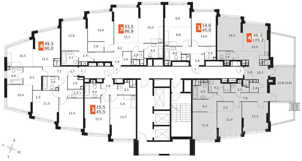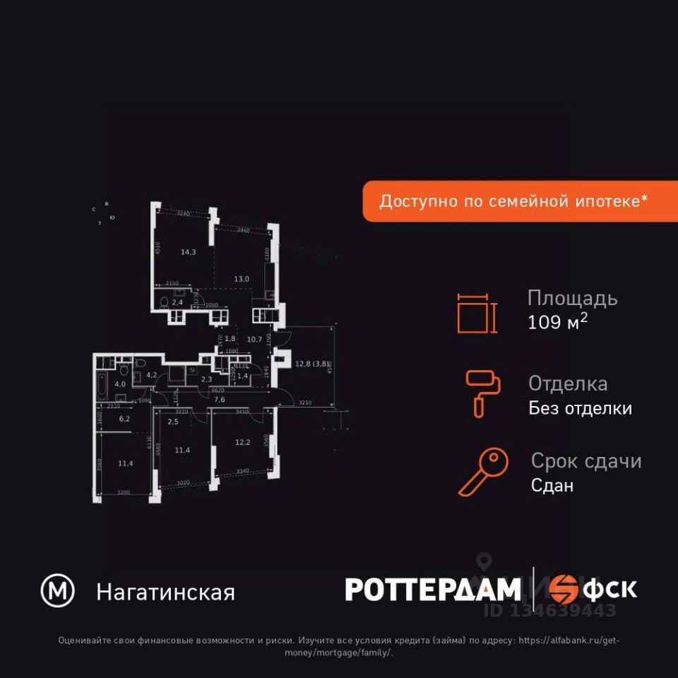 Продаётся 4-к квартира номер 392 общей площадью 109.2 кв.м. на 28-м этаже 28 этажного здания. Без отделки. Цена с учётом скидки.