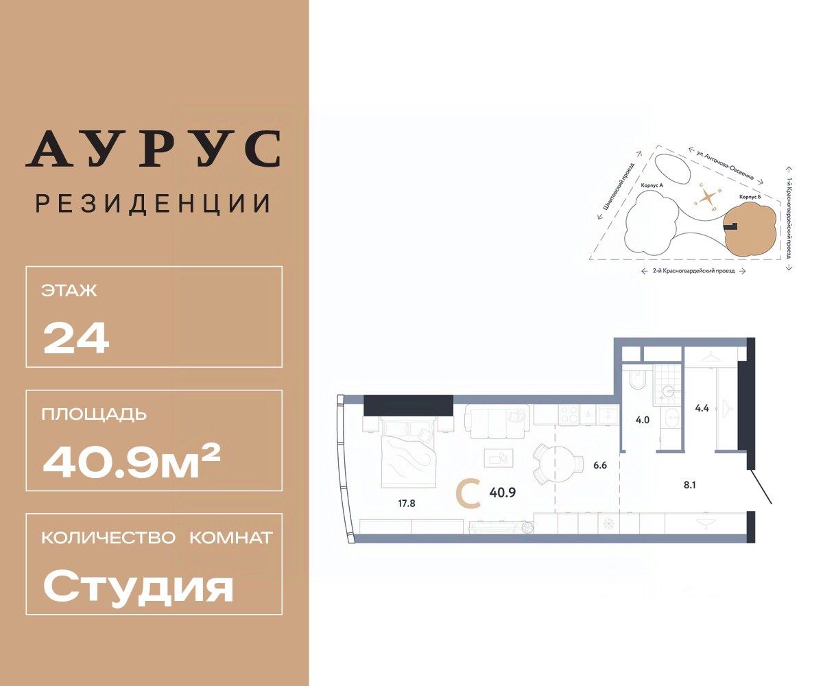Общая площадь40,9 м²