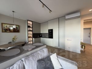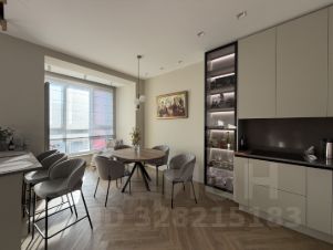 В квартире выполнен дизайнерский ремонт с использованием качественных дорогостоящих материалов. Просторная кухня-гостиная укомплектована кухонной мебелью от дизайнерского мебельного бюро со встроенной бытовой техникой Bosch: холодильник Liebherr, индукционная варочная поверхность, духовой шкаф, микроволновая печь, посудомоечная машина. Смеситель на кухне Omoikiri (Япония), фурнитура Blum, эмаль Egger.
