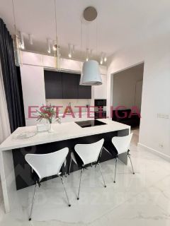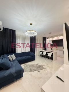 Интерьер выполнен с использованием высококачественных и благородных материалов.Квартира полностью укомплектована мебелью, встроенной техникой и элементами декора.