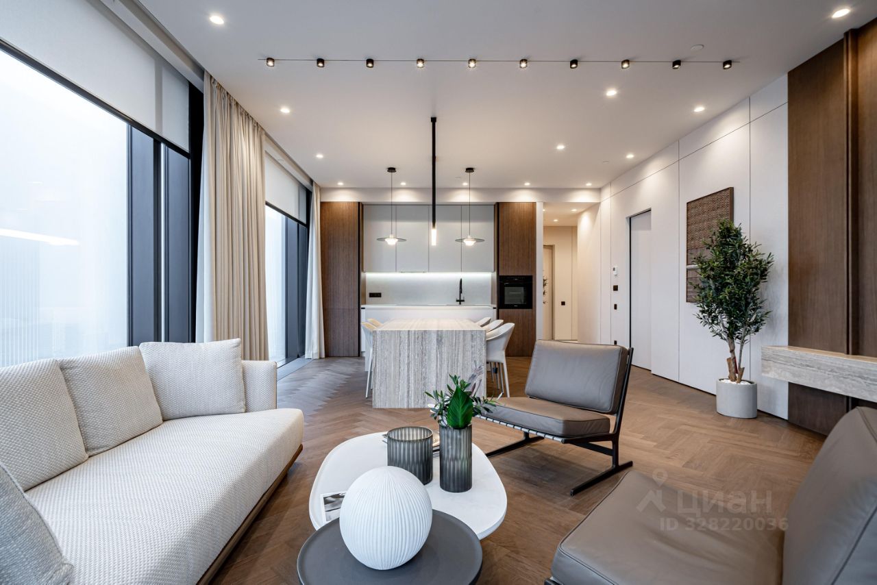 В отделке использованы премиальные материалы, керамогранит (Италия, Испания), полы Coswick, мебель - Molteni, сантехника - Gessi, Remer (Италия), свет - Италия, Центерсвет.
