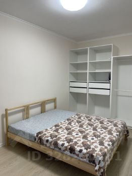 В спальне есть большая гардеробная, стол письменный, выход на лоджию. Двуспальнюю кровать обновили, на фото временная кровать.